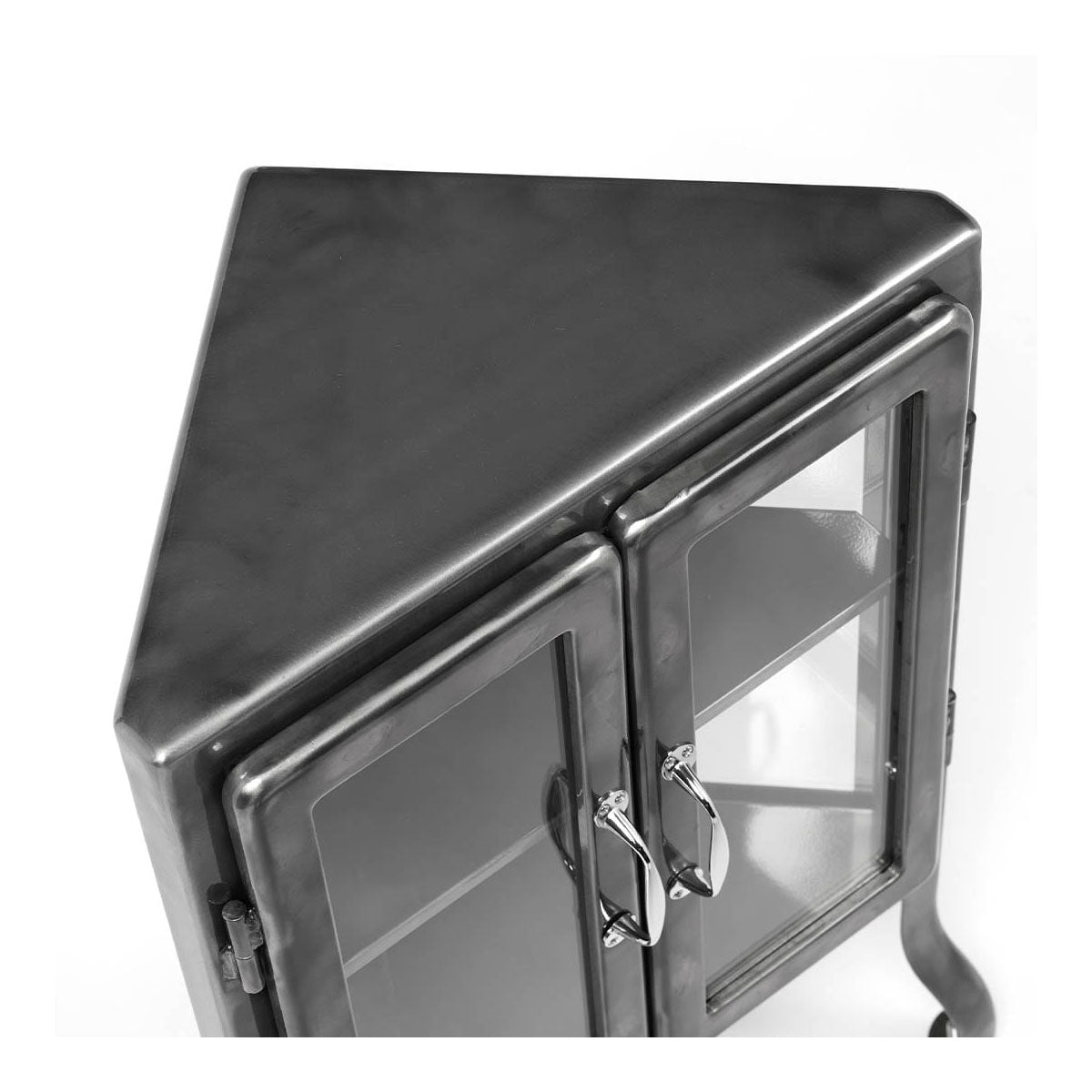 Maximize your space with this steel corner display cabinet, designed to fit perfectly into unused corners of your room.