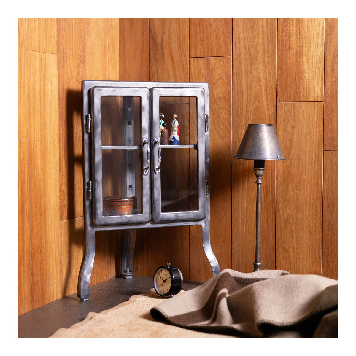 A corner-friendly steel corner display cabinet