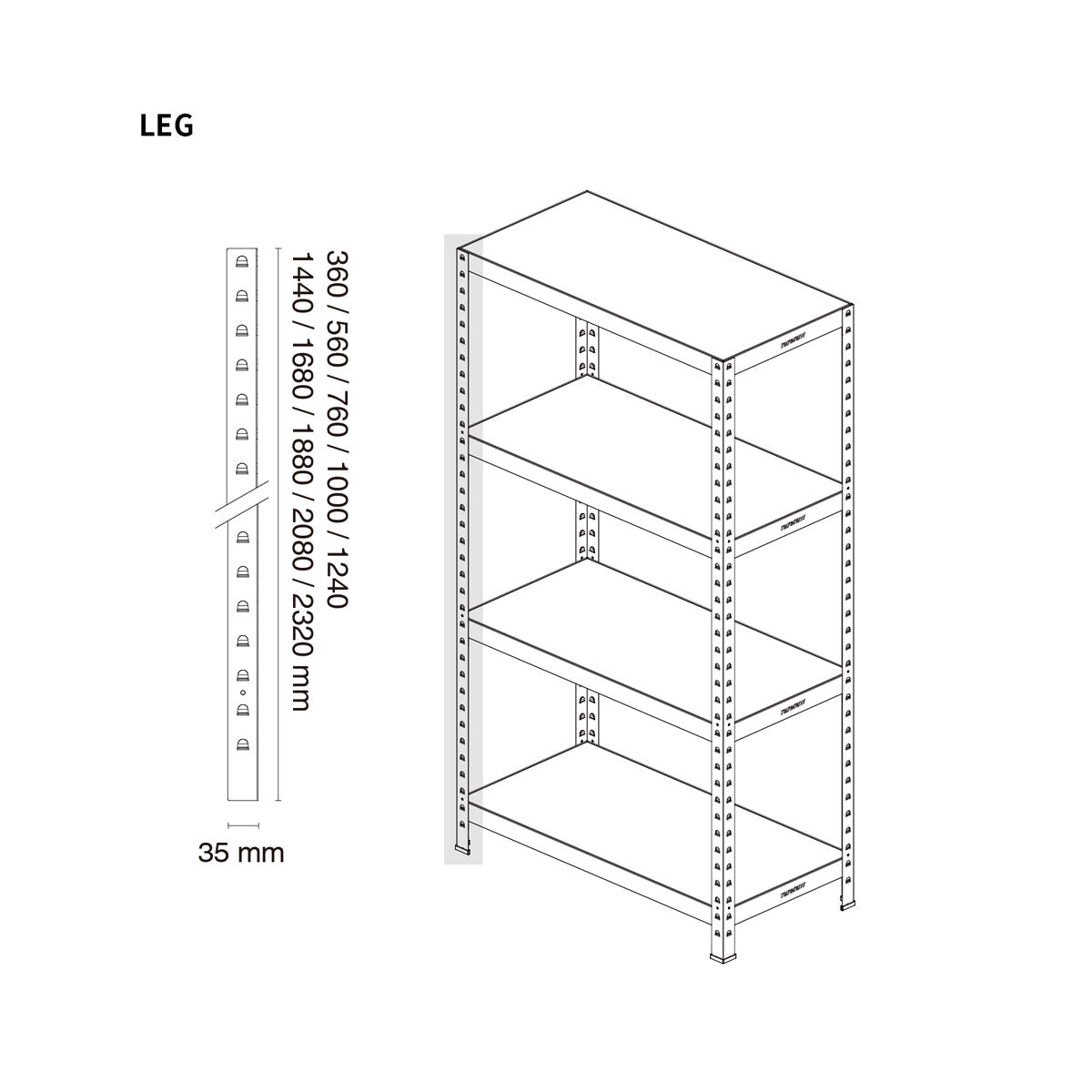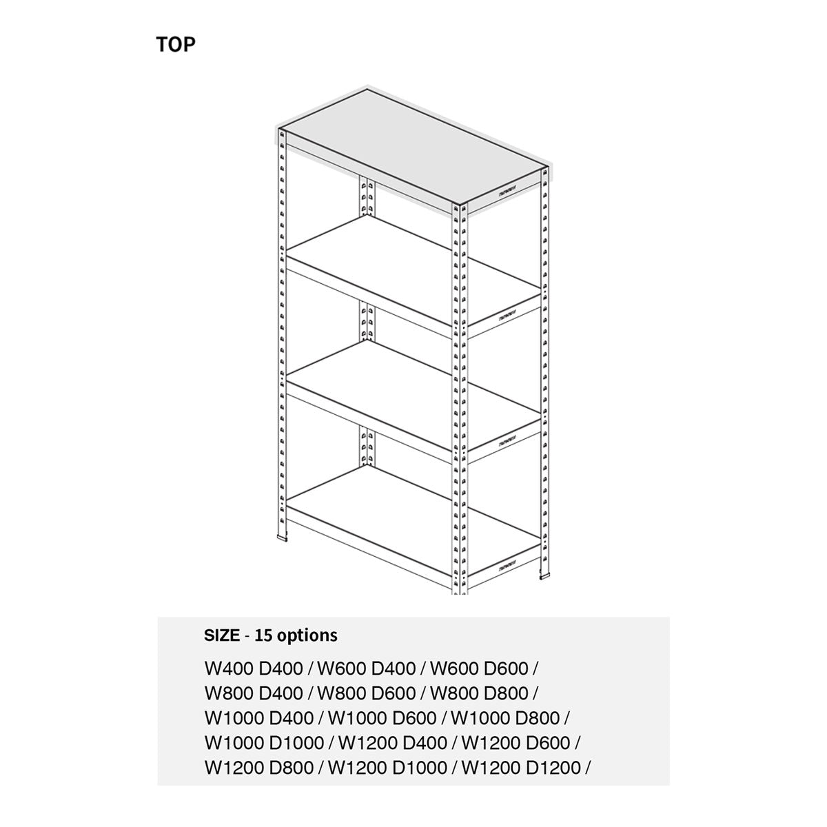 - Dimensions: customizable from 10 height options, 15 shelf top options.