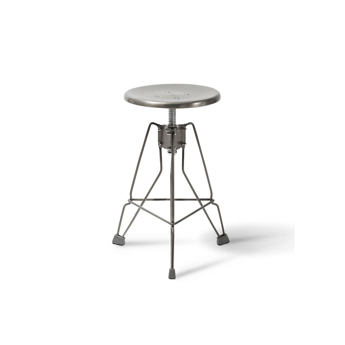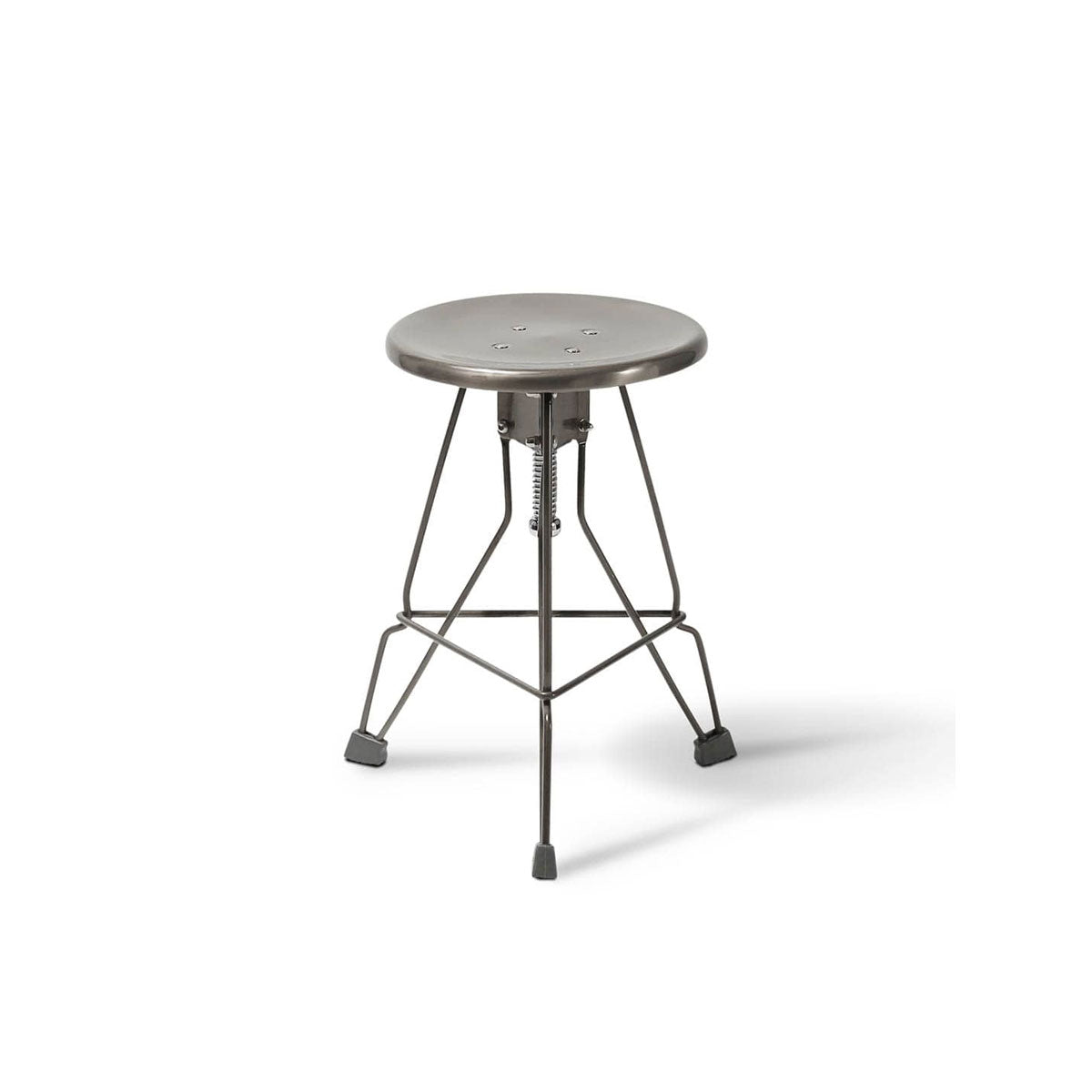 A compact and eye-catching stool with a unique wire-frame design. The slender steel legs give it a light and airy look, while the screw-style seat lets you adjust the height effortlessly (435–475mm). Finished with rubber-tipped feet to protect floors and prevent slipping.