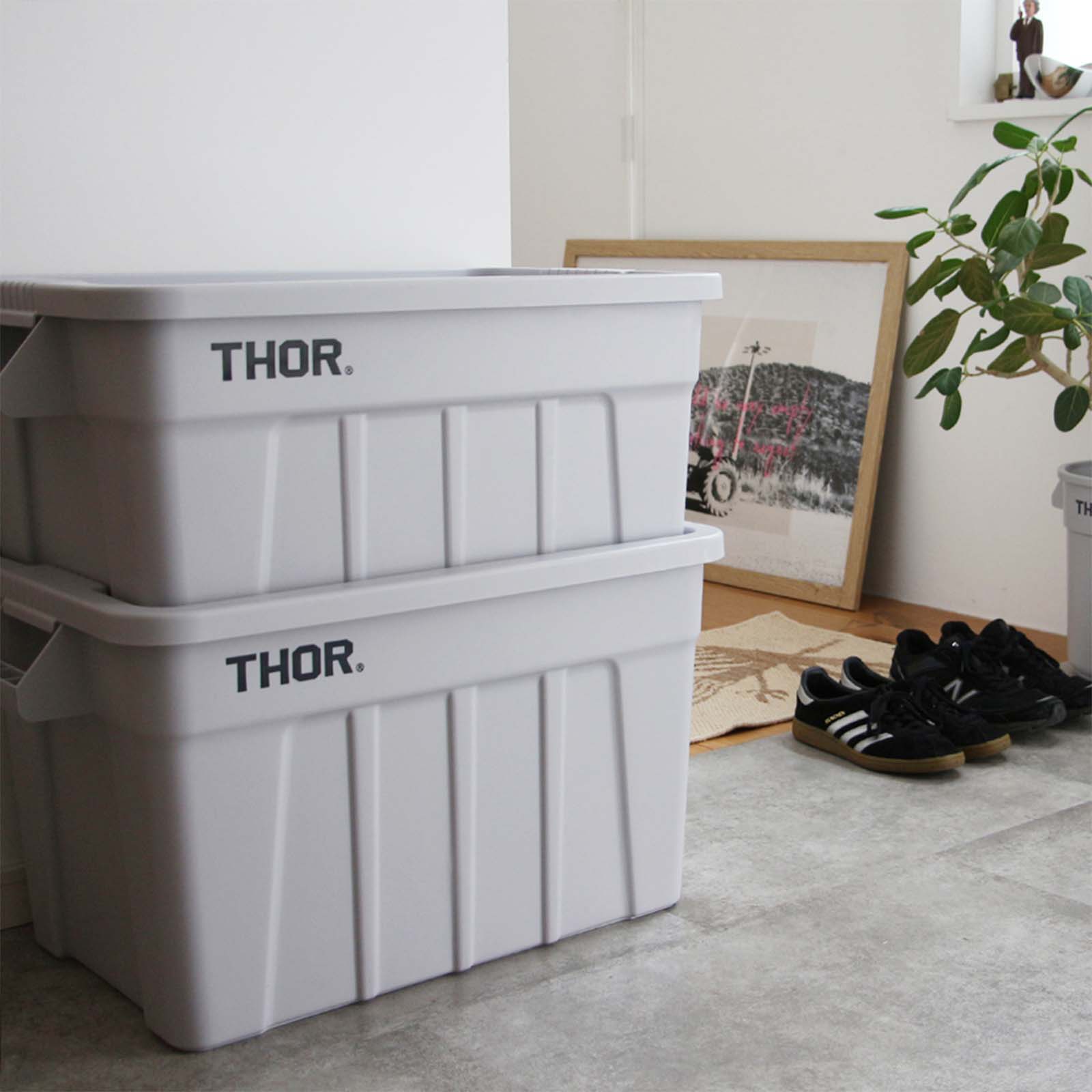 With a rugged and stylish outlook, the Thor Large Tote w Lid 75L storage container is a great solution for keeping you organized. Comes with rounded ergonomic side handles for lifting and transporting it around. This lightweight, stackable, tough and impact-resistance storage container is a multi-purpose monolith for storing your essentials.